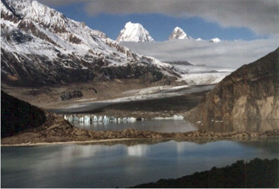 然烏湖,地層組成主要為石炭至二疊紀的板巖、千玫巖和石灰巖,火成巖則以燕山時期的花崗巖為主。平均海拔4000米以上,最高點為南部阿扎冰川主峰,海拔高度6830米,最低點在然烏湖湖口一帶,海拔3860米左右。平均相對高差1500-2000 米之間。整個地勢由東北向西南傾斜。山谷兩岸坡地處于不穩定狀態,泥石流、滑坡頻繁,自然生態處于不穩定的脆弱狀態。