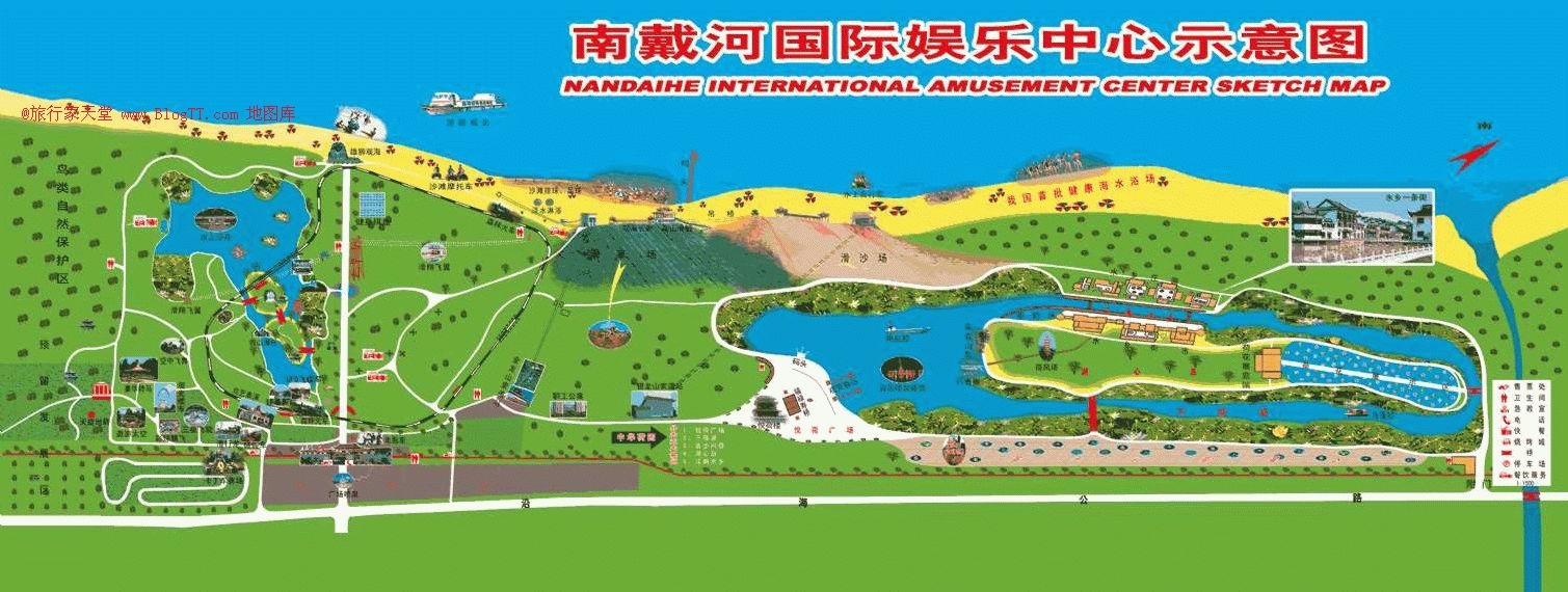 南戴河國(guó)際娛樂中心海洋、沙灘、陽光、空氣、綠色。通過幾年的建設(shè)與完善,已形成了集參與性、刺激性、趣味性、文化性于一體的大型娛樂場(chǎng)所。特色項(xiàng)目有:國(guó)內(nèi)首創(chuàng)的滑草場(chǎng)、滑沙場(chǎng)、高山滑艇、滑圈,驚險(xiǎn)刺激;雄獅觀海為景區(qū)標(biāo)志性雕塑,懸掛式過山車、木星、極速風(fēng)車、空中飛人等近百種驚險(xiǎn)刺激的娛樂參與項(xiàng)目。這些項(xiàng)目驚險(xiǎn)奇特,各具特色;還有海濱浴場(chǎng)、鳥藝表演、水中泛舟、豪華游艇、假山瀑布、廣場(chǎng)噴泉等眾多景觀,讓游人"遠(yuǎn)離都市喧囂,回歸自然懷抱",是我國(guó)北方海岸休閑旅游度假的最佳去處,國(guó)家級(jí)4A景區(qū),秦皇島旅游龍頭企業(yè)。
