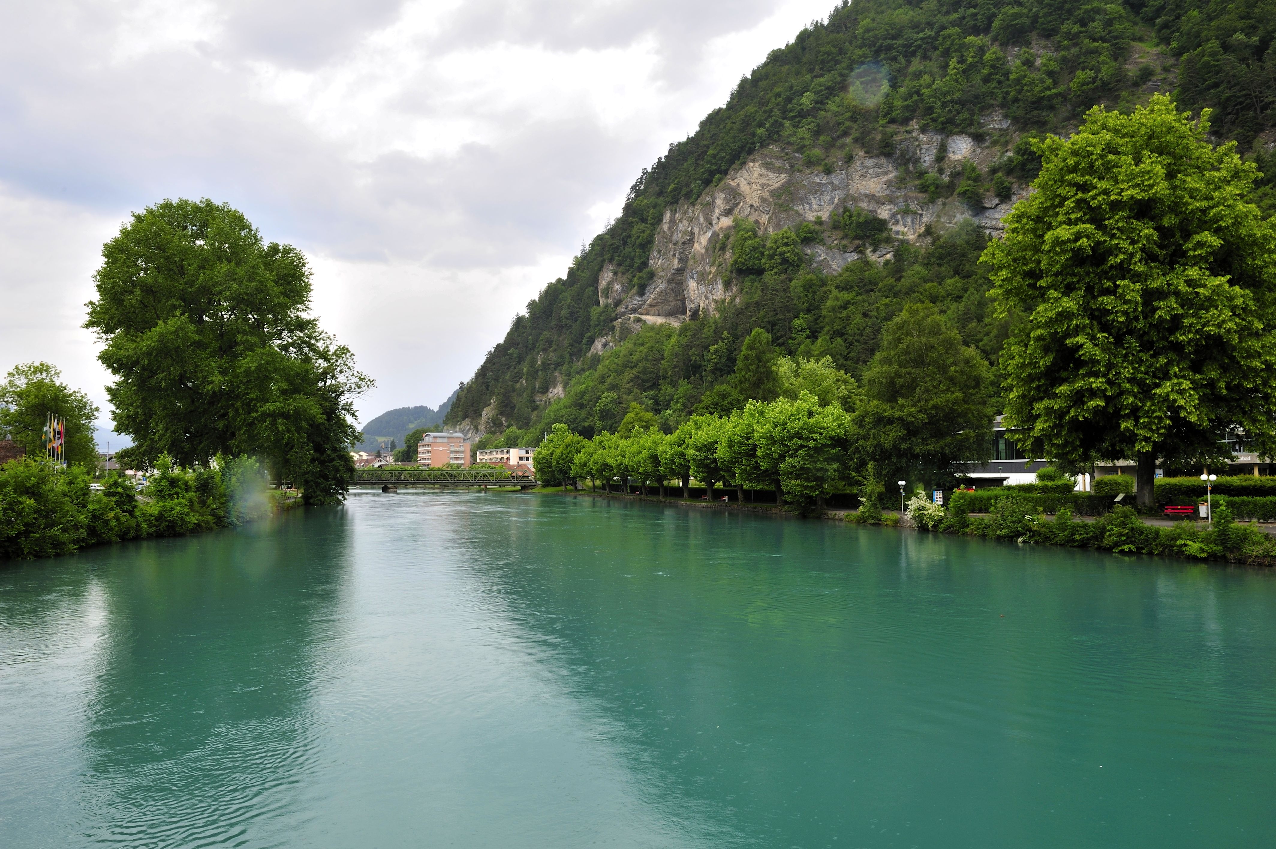 何維克街上有一處廣大的綠色草地---Hohematte,是早期修道院的庭園,從這片草地可以遠眺美麗的少女峰。在Hohematte草地東方的因特拉肯旅館(HotelInterlaken),是此地歷史最悠久的旅館,旅館的墻面上有詩人拜倫于1816年造訪此地的紀念碑,旅館旁的日本庭園則是與日本大津市結為姊妹市所興建的。與何維克街略呈平行的亞拉河則是遠離人潮,氣氛相當幽靜,沿河往西行有不少的古老建筑物,例如市場廣場(Marktplatz)周圍17世紀的市政廳以及14世紀的教堂,都值得前往一看。