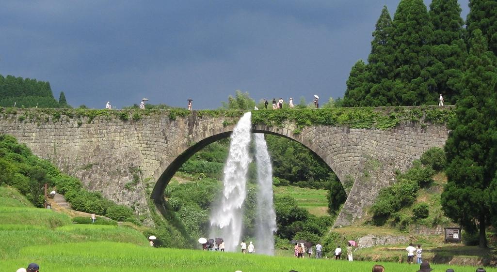 通潤橋建于1852年(嘉永5年)年12月至1854年(嘉永7年)7月29日,是日本最大的拱橋式水道橋。1960年被指定為國家重要文化財產。