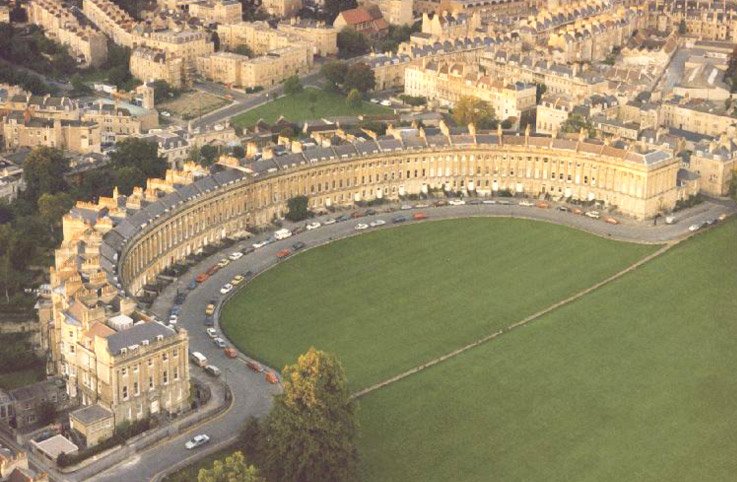 巴斯的許多古老壯觀的建筑都出自約翰•伍德父子之手,父親老約翰•伍德在18世紀(jì)設(shè)計(jì)巴斯的城市規(guī)劃時(shí),建造了一座象征太陽的圓形廣場和一座象征月亮的皇家新月樓,兩者之間由布魯克大街連接,自此,這種以圓形或新月形廣場配置街屋的形式蔚為風(fēng)潮,對倫敦和蘇格蘭的愛丁堡的城市規(guī)劃都產(chǎn)生了很大的影響。