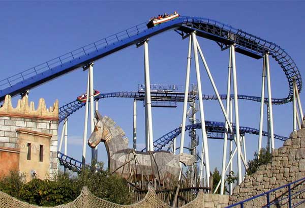 名為“京達(dá)卡”(Kingda Ka)的最新過山車是世界上最快的過山車,它的高度達(dá)到了139米。開始時(shí)水壓彈射器將游客乘坐的車速提高至每小時(shí)206公里,穿過270度的環(huán)形通道,讓人有強(qiáng)烈的失重感。這座過山車有一個(gè)雙軌道站臺(tái),可同時(shí)支持4駕過山車在2條軌道上收放游客,總功率可達(dá)到7400馬力,每小時(shí)可以接待多達(dá)1400名游客。“京達(dá)卡”是目前為止,世界上最高,同時(shí)也是最快的過山車。