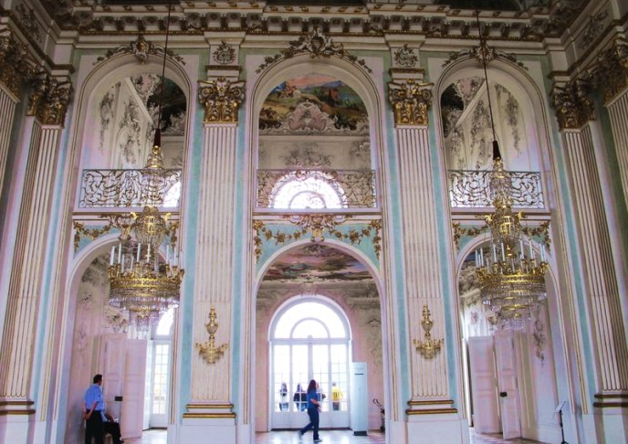 從1701年開始,巴伐利亞公國的繼承人Max Emanuel對宮殿進行了有系統的擴建。導游對古堡建筑的一句介紹,讓我馬上感受到這座老宅的莊嚴,或者說森嚴。“你們看!”他指著面向游客的一幢石砌的樓說,“從下到上,每一層樓的窗戶的大小都不一樣。一樓(并非緊接著地的底樓,需上臺階才能到達)是古堡主人———侯爵夫婦的臥室,窗戶是最大的;二樓是他們小孩的臥室,窗戶比一樓?。蝗龢鞘羌彝ソ處煹淖∷皯舾?;最小的窗戶則是仆人的房間,在頂樓。”
