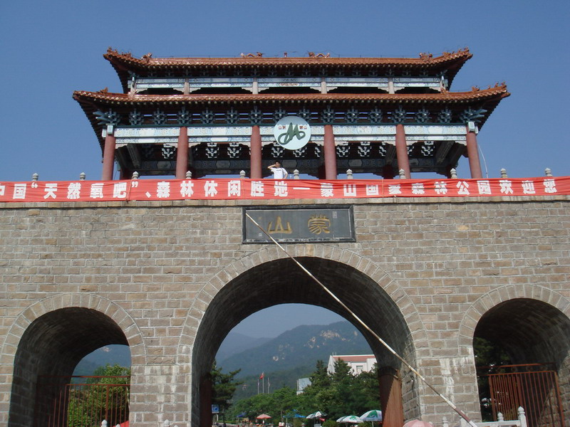 蒙山森林公園大門,位于山東省臨沂市蒙陰縣桃墟鎮花果莊村,GPS導航目標:地理座標為北緯35度33分40秒,東經117度58分19秒。