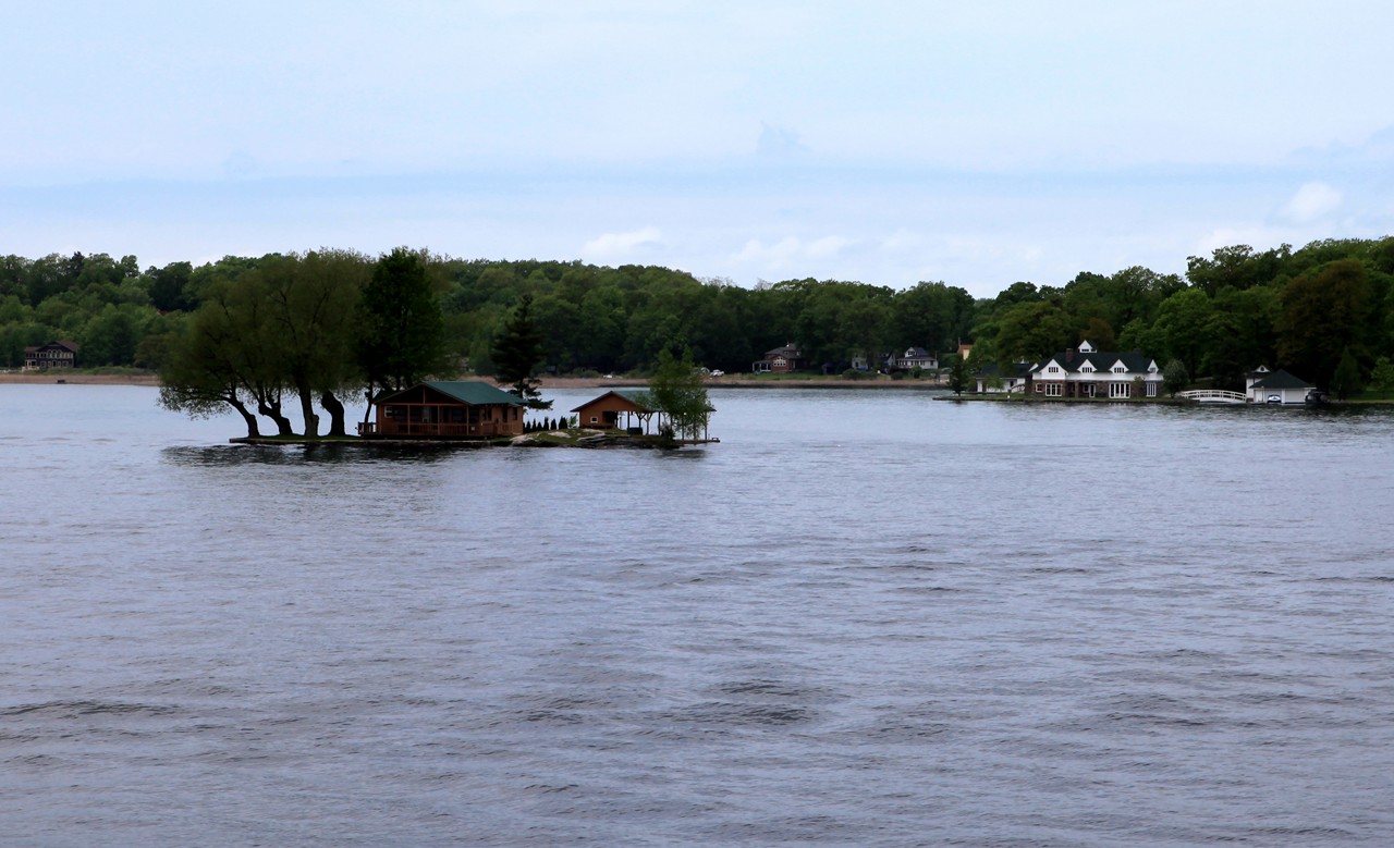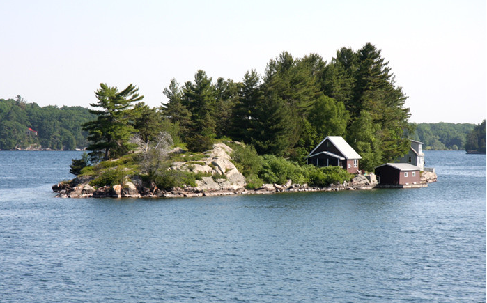 加拿大的千島湖位于渥太華西南200多公里的金斯頓附近。金斯頓由于地處五大湖的連接處,所以也被稱之為“水城”,在很久以前曾是知名的水運要塞。而千島湖的千島則是指圣勞倫斯河與安大略湖相連接的河段,散布著1800多個大小不一的島嶼。最小的只是一塊礁石,大的可以達到數平方英里。在千島湖里對島的定義很有意思,據說只要可以有2棵樹生長的露出水面的土地,就可以被稱之為島。