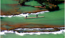 羅平多依河位于羅平縣城東南40公里,經十萬大山峰叢至多依寨子進入景區。景區從多依寨至“雞嗚三省”的三江口,全長12公里的河床上有近40個瀑布,兩岸古木修竹,色彩豐富,層次清晰。河水常年晶瑩剔透,蔚藍無邊。尤其是沿河兩岸盤根錯節的干年古樹,仿佛就是一座龐大的自然根雕藝術展覽館。河道蜿蜒曲折,布依村寨沿河而布,吊腳樓隱現樹叢竹林之間,一派十足的熱帶風光畫面。一水合三江、清江一邊淌、渾水一邊流的奇觀異景就在此顯現。