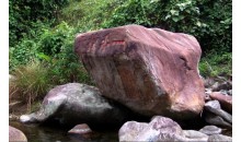 位于海南瓊中縣上安鄉仕階村,在五指山與湯匙嶺之間的東邊大巖石上,距五指山僅5公里,距上安鄉13公里,離縣城營根39公里。一片清代光緒十三年春砌志,是清朝將領馮子才及幕僚刻石,其中,“手辟南荒”、“一手撐天”、“百越鎖鑰”、“巨手擎天”等摩崖石刻群。字大如斗,筆法渾厚,氣勢磅礴。明代大學士邱浚的詠五指山詩曰“五峰如指翠相連,撐起炎荒半壁天。夜盥銀河摘星斗,朝探碧落弄云煙。