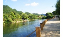天河潭風(fēng)景區(qū),自古山清水秀,氣候宜人,曾經(jīng)是明末清初吳中蕃隱居之地,并留下了許多贊美的詩篇。天河潭是典型的薄層碳酸鹽巖裸露地塊,褶縐頻繁,斷裂交錯,河谷拐曲,縱橫深切;河床上堆積的二十多處鈣化灘壩,串連著二十余個溶洞,形成明河、暗洞、橋中洞、洞中湖、天窗、豎井、絕壁、峽道等復(fù)雜紛紜、多姿多彩的巖溶洞景觀。