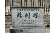 薛閣塔在安徽亳州老城東南,是一座磚塔。直椎式八角開,共七層,高34.15米,周圓23.36米。塔座由八塊青石奠基。塔一二層為仿木結(jié)構(gòu),每角砌磚為方柱,高3.5米。柱上仿高50公分。仿上為塔檐、上并飾以斗拱、昆蟲、鳥卉花紋,登塔門面向東北,有螺旋式臺(tái)階,塔室為一個(gè)面南的小龕,可能是供俸神象用的,現(xiàn)空無一物。