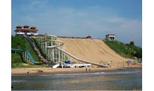 國際滑沙娛樂中心,位于黃金海岸的中部。5000多公頃蒼翠的林帶襯托著連綿40多公里的沙丘,與大海奇妙地組合在一起,構成一幅神奇自然的海洋大漠風光。滑沙場的開發面積為10平方公里。一道道并列的沙山,一直延伸到海灘。這些沙山,高20-40米,陡緩起伏。乘坐索道纜車,還可以瀏覽一望無垠的沙海,觀賞黃金海岸獨有的沙漠風光。