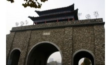 渡江勝利紀(jì)念館坐落在六朝古都南京挹江門城樓上。挹江門城樓地處揚(yáng)子江畔,石頭城北,與風(fēng)景秀麗的獅子山、八字山相連,該城樓建有一座仿明宮殿式樣的兩層宮殿式門樓,門,飛閣流丹,畫梁雕棟,古色雅致。現(xiàn)存挹江門開辟于1921年,當(dāng)時(shí)只有一個(gè)門洞,原稱為海陵門。1929年為使孫中山靈樞順利送往中山陵,將其擴(kuò)建為三道拱門,易名挹江門。
