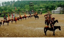 三國馬戰城的三國古戰表演是以三國時期為背景,再現《三國演義》中三英戰呂布的重要場面。 公元190年,18路諸侯為匡復漢室討伐董卓,在虎牢關前展開了一場殊死拼殺。桃園結義的劉備、關羽、張飛三兄弟在迎戰董卓大將呂布時,體現了蓋世英雄的豪邁氣概。