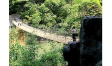 仙人橋位于縣城西南40余公里處的洛陽鎮半星雷屋村,高山斜坡上、綠樹掩映間,有大、小拱天然仙人橋兩座,屬石灰巖溶蝕地貌景觀。大拱橋高70米,寬50米,長150米,小拱橋更為壯觀,高約138米,內拱高106米,寬53米,長約156米,在大拱仙人橋的入口處,有峰巒延綿,勢如雄獅回首南望,獅身高約38米,長約60米,獅頭、獅眼因石灰巖溶蝕脫落而成,形成了“雄獅回頭”的獨特景觀。