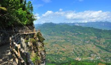 又名復(fù)真觀,這座在武當(dāng)山獅子峰60度陡坡上的古代建筑,被當(dāng)今建筑 學(xué)家贊譽為:利用陡坡開展建筑的經(jīng) 典之作。 復(fù)真觀背依獅子山,右有天池飛瀑,左接十八盤棧道,遠(yuǎn) 眺似出水芙蓉,近看猶如富麗城池。古代建筑大師們,巧妙地利用 山形地勢,不僅創(chuàng)造出1.6萬平方米的占地面積,而且建造殿宇200 余間,結(jié)構(gòu)出“一里四道門”、“九曲黃河墻”、“一柱十二梁”、 “十里桂花香”等著名景觀。