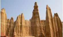 虎跳灘土林位于元謀縣城西北32公里的物茂鄉(xiāng)虎溪行政村,又稱物茂土林,芝麻土林,總面積2.3平方公里。虎跳灘土林形狀以城堡狀、屏風(fēng)狀、簾狀為主,高度一般10?15米,最高27米。