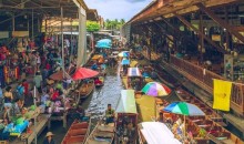 在泰文的意思是『賓至如歸』,當(dāng)年的泰皇拉瑪五世微服出巡到此,不知情的村長(zhǎng)一樣熱情的款待,讓五世皇深受感動(dòng),于是便以Damnnoen Saduak命名,也為水上市場(chǎng)帶來了百年的豐盈。