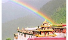 嘎東寺位于日喀則白朗縣年楚河以北16公里嘎東鎮境內。嘎東寺歷經寧瑪派、噶舉派、薩迦派,到十七世紀中葉開始盛行格魯派。寺中珍藏有舉世罕見的寶物,即該寺第四任堪布桑布欽布的兩條徑骨和空行母絲薩曲珍的頭顱。在桑布欽布右徑骨上端的骨縫四周天然生成著微小的釋迦牟尼、觀音菩薩、無量光佛、護法神、度母五尊佛像;左脛上端天然生成著微小的釋迦牟尼佛像和4個白色舍利;在度母化身空行母絲薩曲珍的頭顱上天然生成著三個藏文字母和度母像。原嘎東寺已被毀壞,1985年在原址上重新修建了嘎東寺。