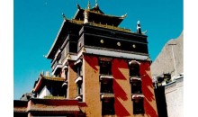 班禪新宮位于扎布倫寺以南,是十世班禪在1954年建造的夏宮,新宮建筑富麗堂皇,十分幽雅,是避暑的好地方。宮內(nèi)放置了很多西藏歷史文物及藝術(shù)精品,尤以一幅《八思巴會見忽必烈》的壁畫,最為精美。新宮有三道門,第一道門前檐有四根八角朱漆大柱抵頂,門殿浮雕著兇悍不馴的野獸、騰躍欲飛的蟠龍和各種花卉圖案門壁兩側(cè)。彩繪著卷云、猛虎、長龍、人物和佛教故事壁畫。筆法細膩,形神俱肖。