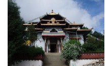 喇嘛嶺寺位于西藏林芝地區所在地八一鎮東南三十公里處的森林包圍的山坳里。喇嘛嶺寺的金頂與翠綠的松柏交相輝映。寺院經堂和僧舍四周,各種顏色的菊花、格桑花爭相斗艷,鐃跋聲、鈴鼓聲以及渾厚而又清脆的誦經聲回蕩在山谷。這座建于上個世紀三十年代末的古剎,屬藏傳佛教四大教派之一的寧瑪派(俗稱紅教)寺廟。