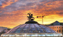 圣瓦西里大教堂(華西里·伯拉仁內教堂)位于俄羅斯首都莫斯科市中心的紅場南端,緊傍克里姆林宮。由俄羅斯建筑師巴爾馬和波斯特尼克根據沙皇和伊凡大公的命令主持修建,于1560年建成。教堂的名字根據當時伊凡大帝非常信賴的一位修道士瓦西里的名字而取。中央的塔高65米,共有九個金色洋蔥頭狀的教堂頂。這九個教堂頂不是一開始就有,而是后來分別加上去的